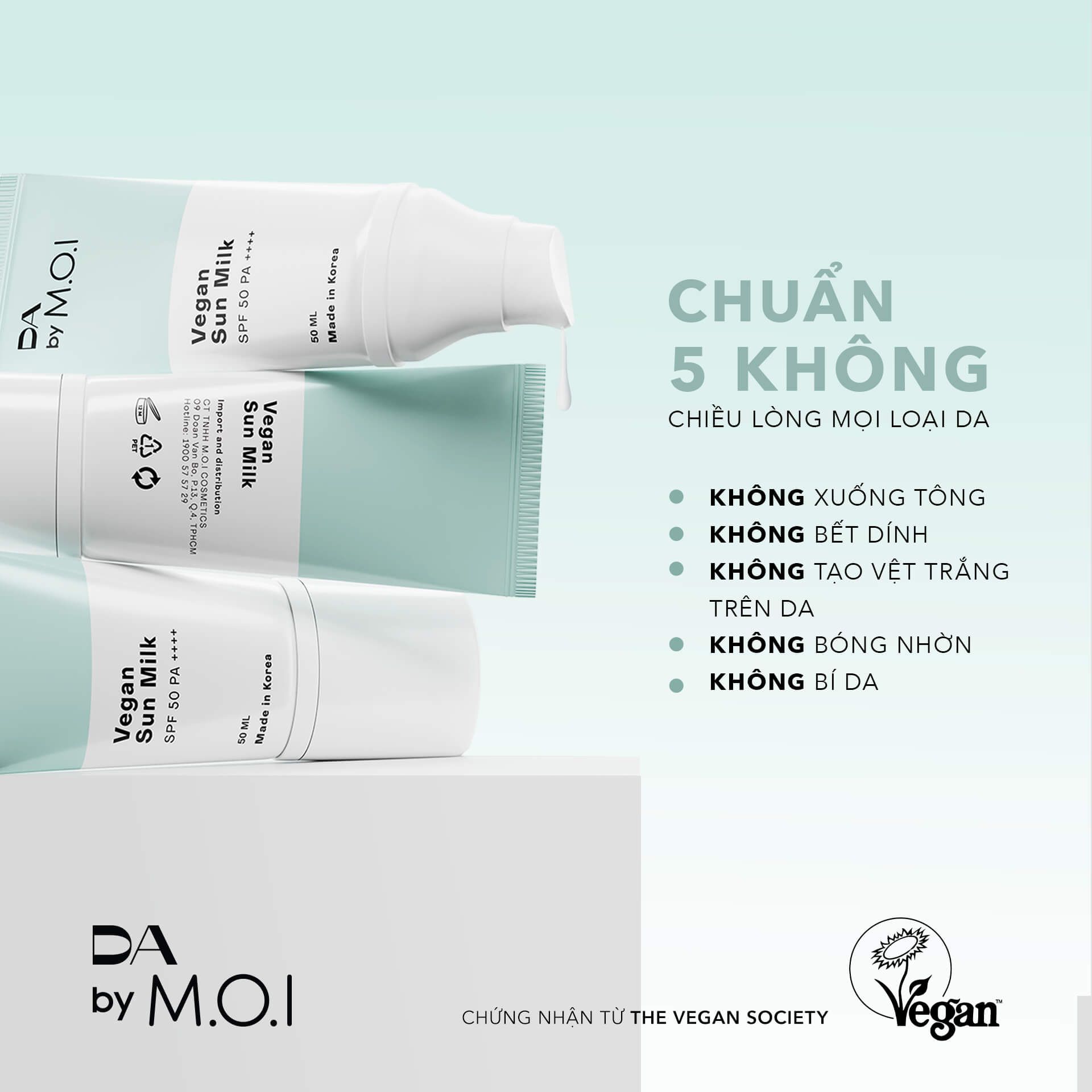 Kem chống nắng Thuần Chay DA By M.O.I – Chỉ số chống nắng cao SPF 50 PA++++ – Chống nắng cho da