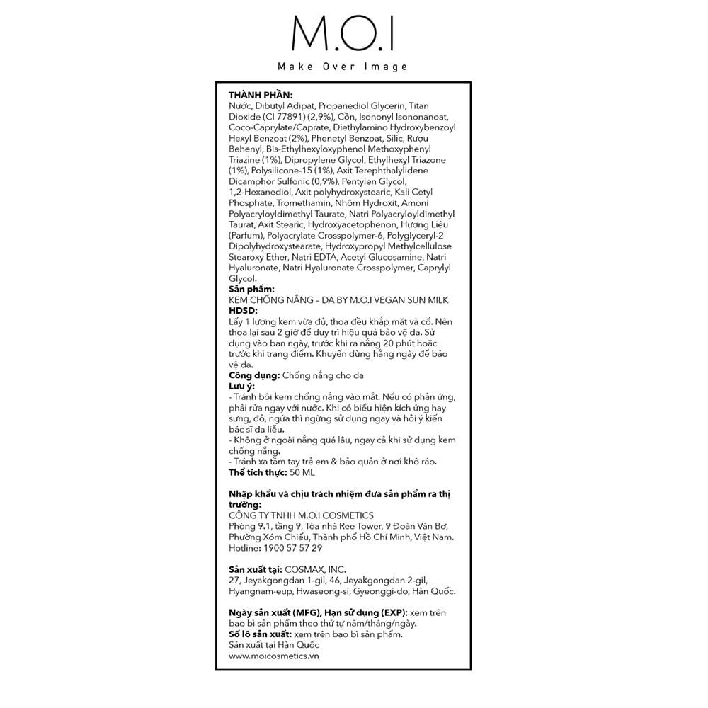 – Công ty chịu trách nhiệm nhập khẩu và phân phối độc quyền: CÔNG TY TNHH M.O.I COSMETICS